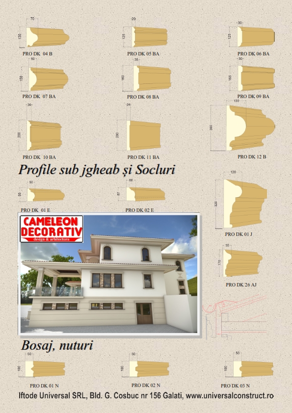 * ROGOJINA * SCANDURA * Ancadramente * Solbancuri * Cornișe * Chei de boltă * Capiteluri * Coloane * Pilaștrii * Ornamente de fațadă * Profile interior * Bosaje, nuturi